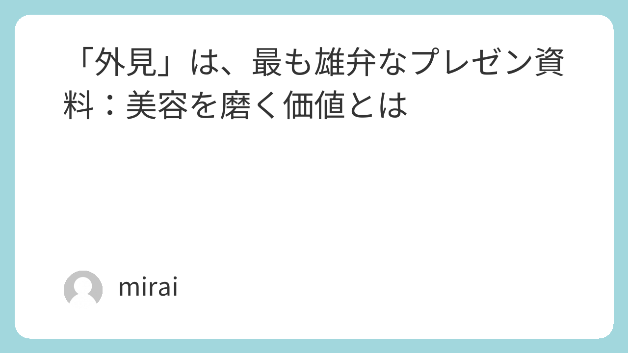 「外見」は、最も雄弁なプレゼン資料:美容を磨く価値とは