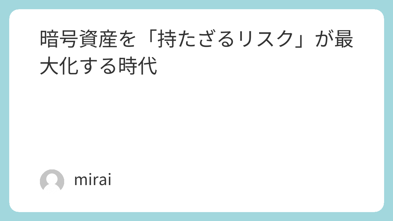 暗号資産を「持たざるリスク」が最大化する時代