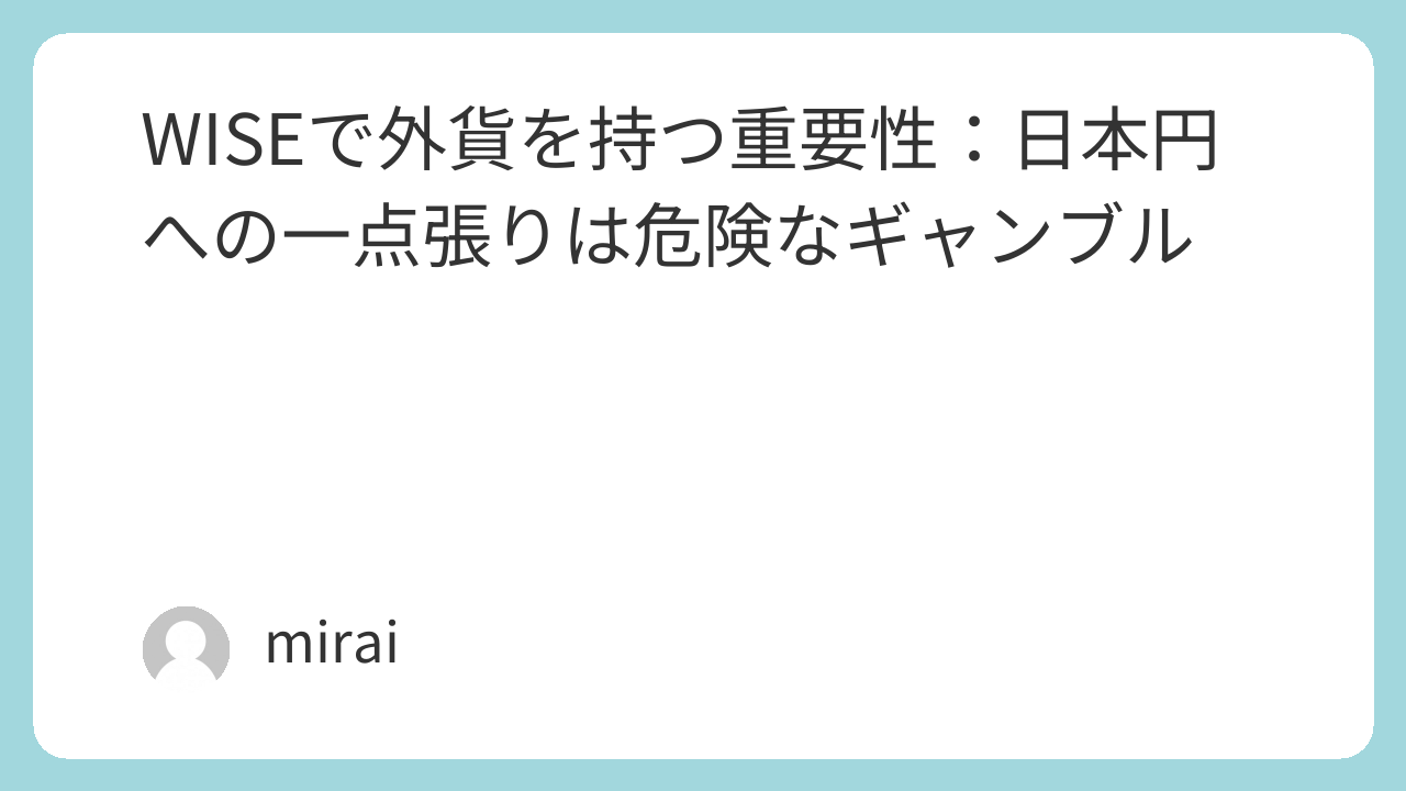 今回は、「日本円しか持っていないこと」の致命的なリスクと、それを回避するための具体的かつ最強のソリューション「WISE(ワイズ)」について解説します。