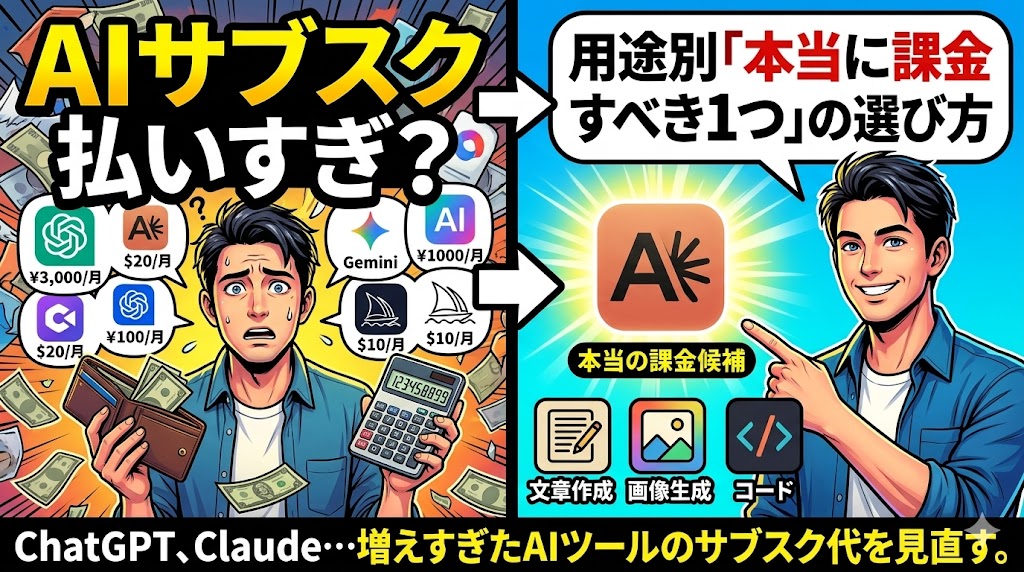 AIツールの進化が早すぎるあまり、私たちは「とにかく一番良いものをすべて持っておきたい」という不安に駆られがちです。しかし、月額20ドルのサブスクリプションが3つ、4つと重なれば、それは大きな固定費となります。