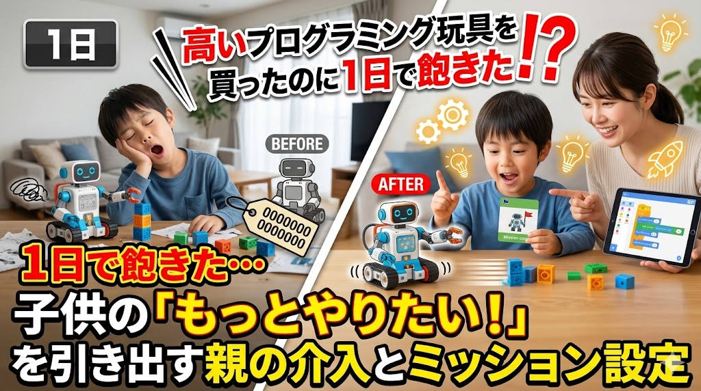 高価なプログラミング玩具が1日でただのガラクタになるか、子供の思考力を劇的に伸ばす最高の相棒になるかは、ひとえに「親の介入と演出」にかかっています。