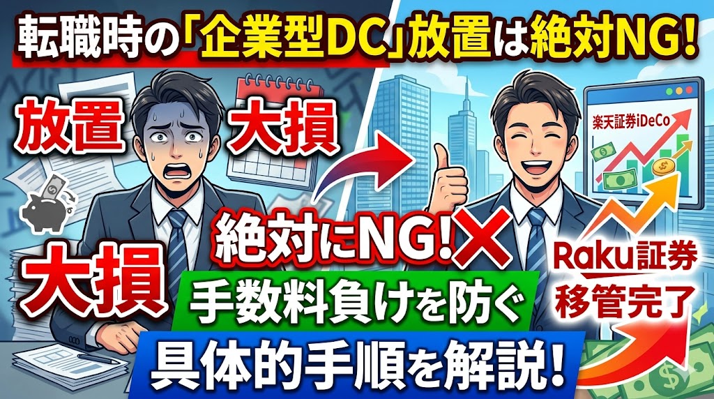 結論から言えば、転職先に企業型DC制度がない場合、またはフリーランス・公務員になる場合は、楽天証券のiDeCo(個人型確定拠出年金)へ移管するのが最も賢い選択です。本記事では、企業型DCを放置する恐ろしさと、業界トップクラスの条件を誇る楽天証券への移管手順を、初心者にも分かりやすく徹底解説します。