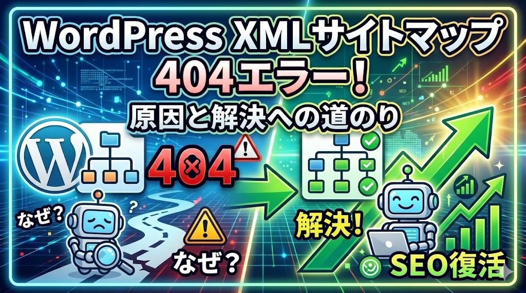 「Google Search Consoleを確認したら、サイトマップが『取得できませんでした』になっている!」「sitemap.xmlにアクセスしても404エラーが表示される……」。WordPressでブログやサイトを運営していると、避けては通れないのがこのXMLサイトマップの404エラー問題です。
