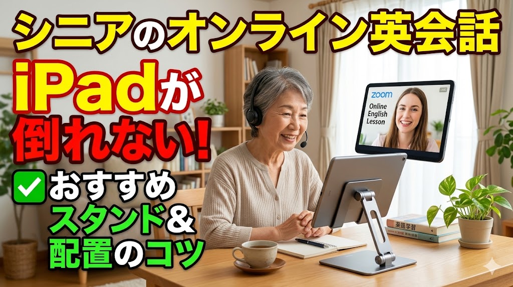 この記事では、オンライン英会話を頑張るシニア世代に向けて、なぜ専用のスタンドが必要なのか、画面をタッチしても絶対に倒れないスタンドの選び方、そして講師に「若々しく素敵な生徒さんだな」と好印象を与えるためのiPadの配置(カメラ角度)のコツまで、約5000字のボリュームで徹底的に解説します。この記事を読めば、機械への不安が一切なくなり、100%英語だけに集中できる極上のレッスン環境が完成するはずです。