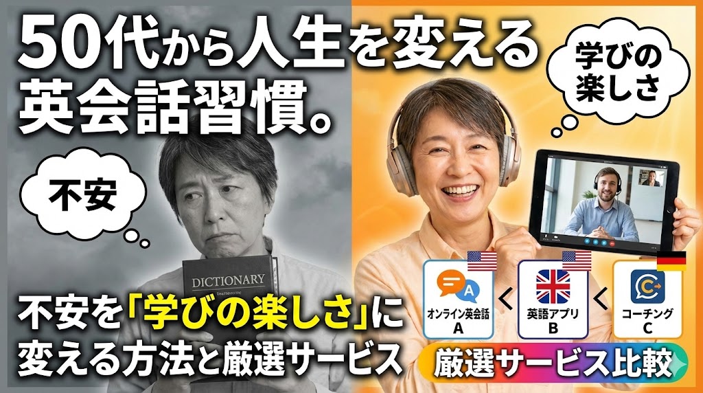 この記事では、4000字を超えるボリュームで、50代が抱える英会話への不安を科学的・論理的に解消し、最も効率的で楽しい学習方法を徹底解説します。後半では、50代のライフスタイルに合わせた英会話サービスもご紹介します。あなたの「第二の青春」を、英語という武器でより輝かせていきましょう。