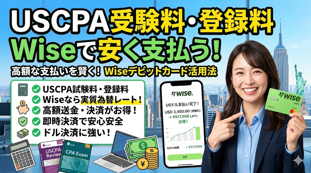 この記事では、USCPAをはじめとする海外資格にかかる費用の実態と、高額なドル決済の隠れ手数料を限りなくゼロに近づける最強の決済ツール「Wise(ワイズ)デビットカード」の賢い使い方を徹底解説します。試験勉強への投資を無駄にしないために、ぜひ最後までお読みください。