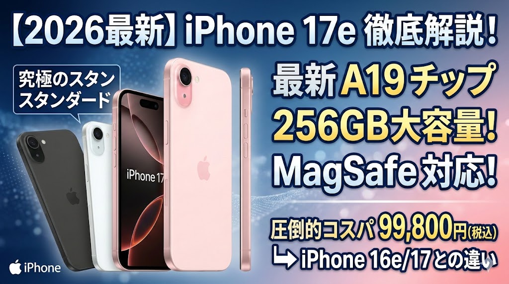 「最新の機能は欲しいけれど、15万円以上のProモデルは高すぎる」。そんなユーザーにとって、最新のA19チップと大容量ストレージを備えた17eは、2026年で最高の、そして唯一無二の選択肢となるはずです。