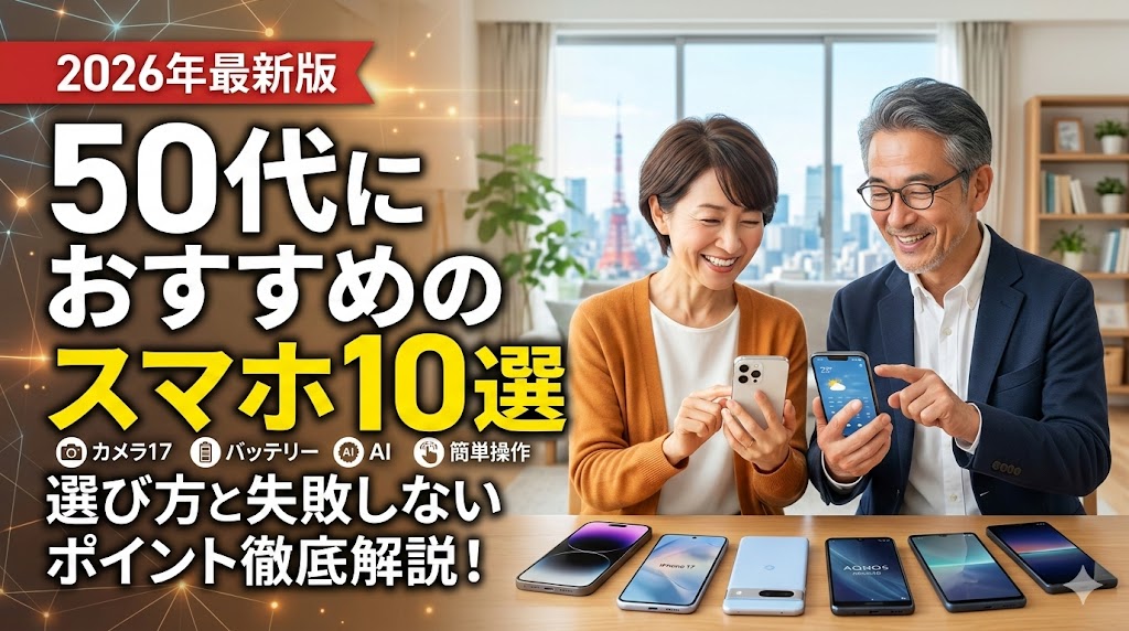 本記事では、年間100台以上の端末をチェックする専門家が、50代のライフスタイルに最適なスマートフォン10選を厳選しました。老眼対策になる視認性、孫やペットを綺麗に撮れるカメラ性能、そして4〜5年は安心して使い続けられる耐久性を基準にランキング形式でご紹介します。後悔しないための「選び方のコツ」も併せて解説しますので、ぜひ参考にしてください。