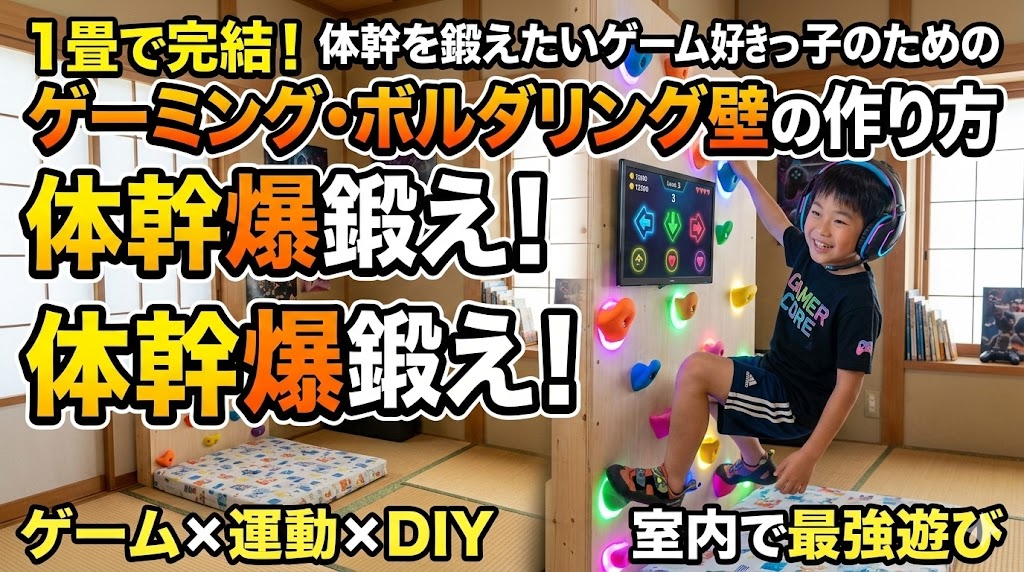 実はボルダリング(クライミング)は、スポーツというよりも「体を使った物理パズルゲーム」です。この記事では、賃貸マンションでも壁を一切傷つけずに構築でき、子供のゲーマー魂に火をつける「自宅用ボルダリング壁」の完全なDIY設計図と、ゲーム感覚で体幹を鍛え上げるギミックの作り方を徹底解説します。
